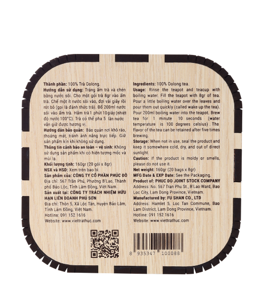 – Trà Oolong 100%.
