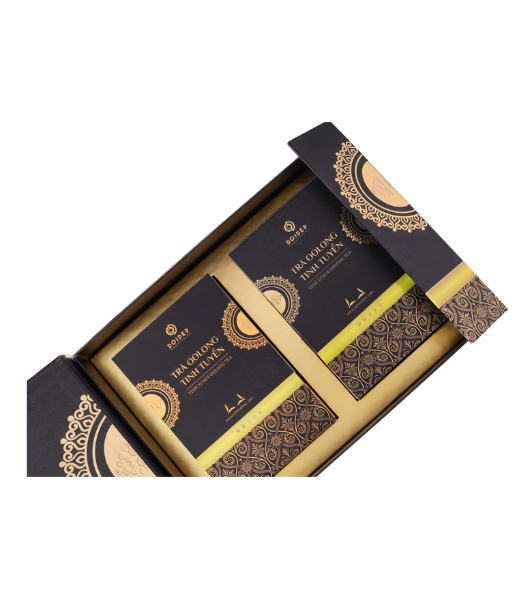 Trà Oolong Tinh Tuyển dạng hộp là sự kết hợp hoàn hảo của những búp chè Xuân Mới và chè Kim Tuyên. Oolong Tinh Tuyển cho hương tươi mới, ngọt nhẹ như hoa lài, không ngào ngạt choáng ngợp, mà dai dẳng, vấn vương mãi trong không khí.